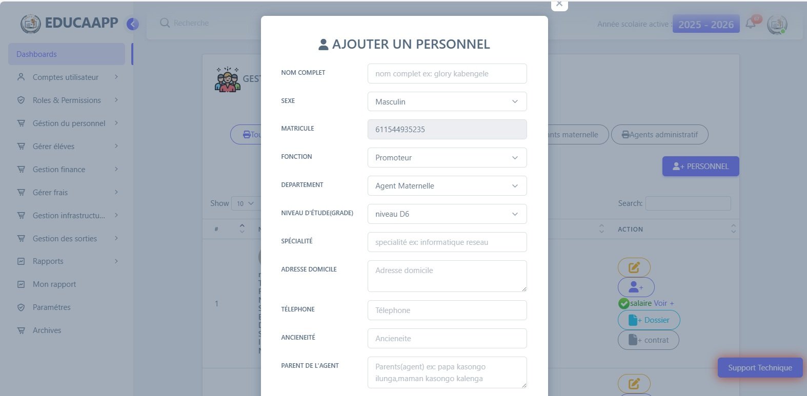Ressources humaines , La gestion des ressources humaines (GRH) dans EducaApp vise à centraliser, automatiser et optimiser la gestion du personnel scolaire. Elle permet aux établissements d’avoir une vision claire et actualisée de l’ensemble du corps administratif, enseignant et technique.